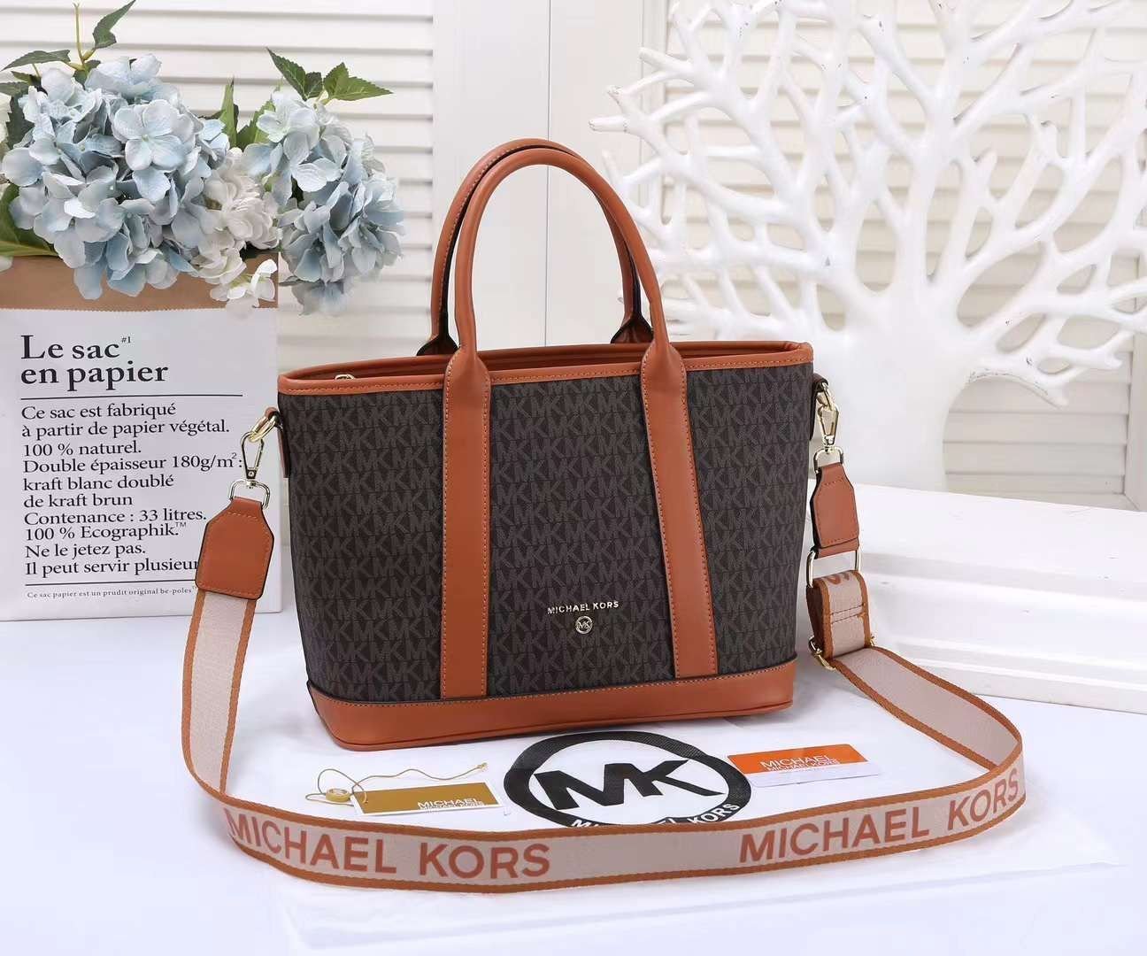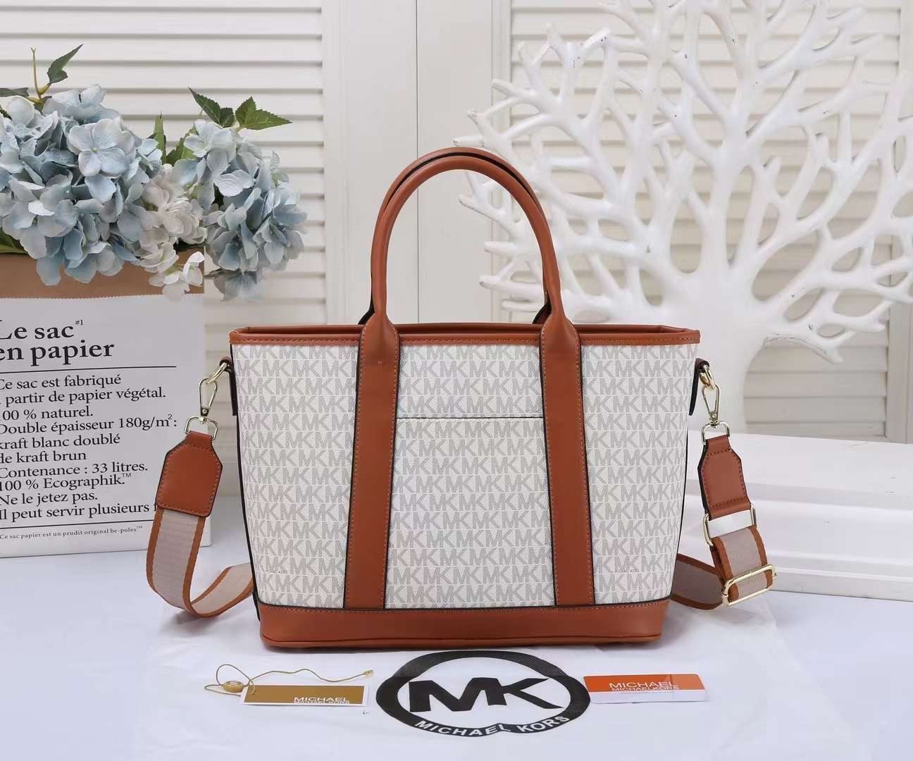 MICHAEL KORS SIGNATURE LOGO SATCHEL MEDIUM TOTE BAG (WHITE)